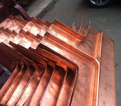 銅止水帶接頭是以銅含量超過99.99%的電解銅為原料,采用一次性成型方式加工而成的接頭形狀,目前可加工形狀包含止水銅片T型接頭、十字型接頭以及V型接頭。